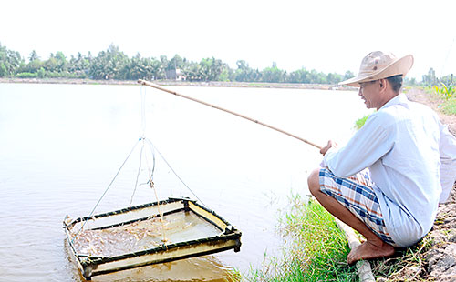 Kéo chiếc rớ với hàng chục chú tôm thẻ chân trắng, anh Lê Văn Sảnh, nông dân ấp Bến Cộ, xã Đại Phước, huyện Nhơn Trạch vui mừng vì hồ tôm của gia đình vẫn đang phát triển tốt. “Khoảng hơn 2 tháng nữa là lứa tôm này có thể xuất được rồi”, anh Sảnh hồ hởi cho hay.