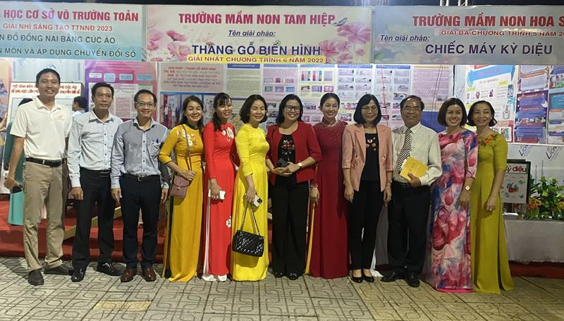 Lãnh đạo tỉnh, TP.Biên Hòa đến tham quan và chụp hình lưu niệm cùng giáo viên tại Tuần lễ Văn hóa - Giáo dục TP.Biên Hòa lần thứ nhất