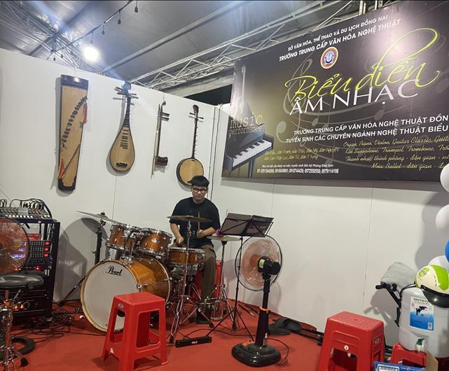 Học sinh Trường Trung cấp Văn hóa nghệ thuật tỉnh biểu diễn âm nhạc. Đây là một trong những hoạt động diễn ra xuyên suốt Tuần lễ Văn hóa - Giáo dục TP.Biên Hòa
