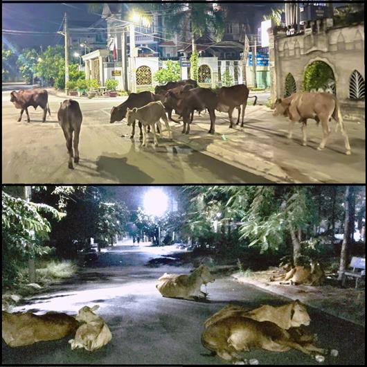 Đàn bò thả rông ở khu dân cư Phú Gia KP.3, P.Trảng Dài (TP. Biên Hòa) gây ảnh hưởng đến sinh hoạt của người dân