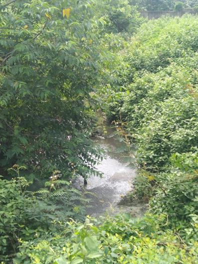Con suối bị ô nhiễm ở phía sau cơ sở chăn nuôi Công ty TNHH MTV Hương Vĩnh Cửu (xã Mã Đà, huyện Vĩnh Cửu)