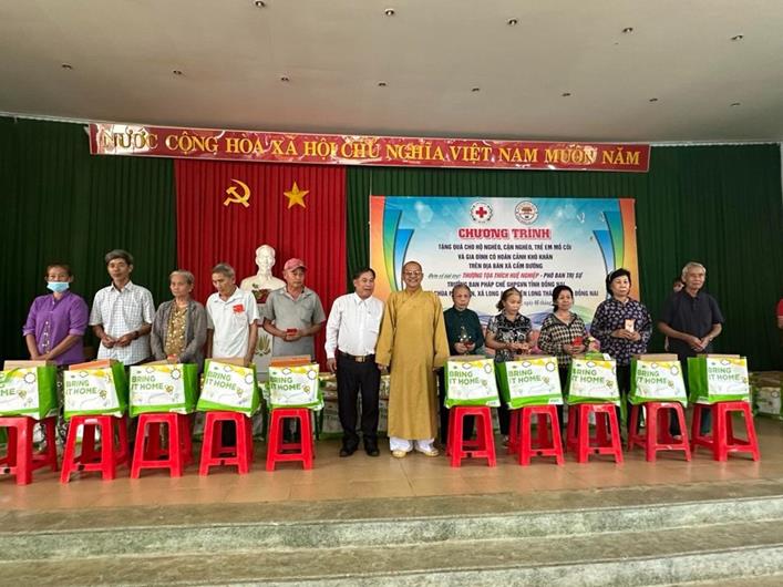 (CTT-Đồng Nai)- Chùa Phước An (xã Long An, huyện Long Thành) vừa phối hợp với Hội Chữ thập đỏ huyện Long Thành tổ chức trao tặng 230 phần quà cho người dân có hoàn cảnh khó khăn, người già neo đơn, trẻ em có hoàn cảnh đặc biệt và người khuyết tật trên địa bàn xã Long An và xã Cẩm Đường thuộc huyện Long Thành.