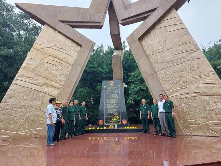 Ông Nguyễn Văn Chương (ngoài cùng, bìa phải) cùng các cựu chiến binh về nguồn, tri ân anh hùng liệt sĩ trên địa bàn tỉnh nhân kỷ niệm 50 năm Ngày giải phóng miền Nam