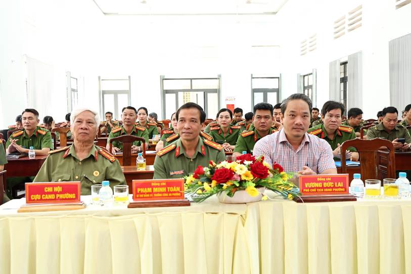 Tham dự hội nghị có đồng chí Vương Đức Lai, Ủy viên Ban Thường vụ Đảng ủy, Phó Chủ tịch UBND phường; đồng chí thượng tá Phạm Minh Toán, Ủy viên Ban Thường vụ Đảng ủy, Trưởng Công an phường cùng các đồng chí trong Ban lãnh đạo Công an phường; đại diện các phòng, ban, đơn vị chuyên môn của phường, đại diện Chi hội Cựu Công an nhân dân phường; cùng toàn thể cán bộ, chiến sĩ Công an phường và lực lượng An ninh trật tự ở cơ sở.