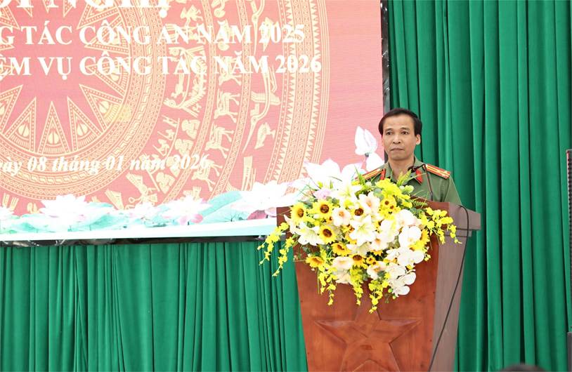 Tại hội nghị, đồng chí Thượng tá Phạm Minh Toán đã quán triệt và thông qua kết luận của đồng chí Giám đốc Công an tỉnh tại Hội nghị tổng kết công tác Công an năm 2025 và triển khai nhiệm vụ công tác năm 2026. Báo cáo tại hội nghị nêu rõ: trong năm 2025, Công an phường đã phát huy tốt vai trò nòng cốt trong công tác bảo đảm an ninh trật tự ở cơ sở; chủ động tham mưu cho Cấp ủy, chính quyền địa phương nhiều giải pháp sát với tình hình thực tiễn; kịp thời nắm chắc tình hình, quản lý chặt địa bàn, đối tượng, không để xảy ra các vụ việc phức tạp, bị động, bất ngờ. Trong công tác đấu tranh phòng, chống tội phạm, đơn vị đã triển khai quyết liệt các đợt cao điểm tấn công, trấn áp tội phạm hình sự, ma túy; duy trì nghiêm công tác quản lý nhà nước về trật tự an toàn xã hội, đặc biệt là quản lý vũ khí, vật liệu nổ, công cụ hỗ trợ và pháo, góp phần giữ vững ổn định địa bàn.
