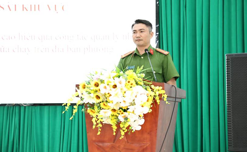 Đồng chí Thượng tá Phạm Minh Toán - Trưởng Công an phường phát biểu tại hội nghị
