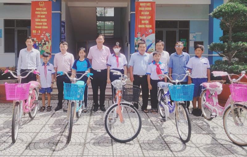 Tại buổi trao tặng, đại diện Công đoàn Phòng giao dịch Ngân hàng CSXH huyện Nhơn Trạch đã tặng 5 chiếc xe đạp, mỗi chiếc trị giá gần 2 triệu đồng cho các em học sinh và mong rằng phương tiện này sẽ giúp các em đến trường thuận tiện hơn. Đồng thời chúc các em học sinh tiếp tục vững bước trên con đường học tập và hứa sẽ luôn đồng hành cùng địa phương trong công tác chăm lo cho học sinh nghèo trên địa bàn.