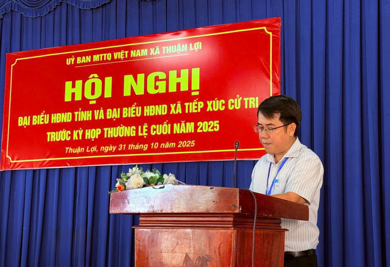 Tại hội nghị, cử tri xã Thuận Lợi đã được nghe đại biểu HĐND tỉnh Bùi Thị Minh Thúy thông tin nhanh về tình hình kinh tế – xã hội, quốc phòng – an ninh 9 tháng đầu năm 2025 của tỉnh; kết quả các kỳ họp thứ nhất, hai, ba, bốn và năm của HĐND tỉnh; chương trình kỳ họp thường lệ cuối năm 2025; cùng kết quả trả lời các ý kiến, kiến nghị của cử tri trong đợt tiếp xúc trước kỳ họp giữa năm.