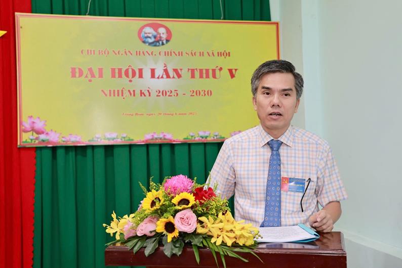 Phát biểu chỉ đạo Đại hội, đồng chí Đỗ Ngọc Nam, Ủy viên Ban Thường vụ Huyện ủy, Phó Chủ tịch UBND huyện Trảng Bom - Trưởng ban đại diện HĐQT NHCSXH huyện đã biểu dương và ghi nhận những kết quả mà Chi bộ NHCSXH huyện đạt được trong nhiệm kỳ qua, khẳng định Chi bộ NHCSXH huyện đã thực hiện tốt vai trò lãnh đạo triển khai toàn diện và hiệu quả các mặt công tác, đạt được những kết quả quan trọng trong công tác xây dựng Đảng và thực hiện nhiệm vụ chính trị, góp phần tích cực vào bảo đảm an sinh xã hội trên địa bàn huyện. Đồng thời đề nghị Chi bộ NHCSXH huyện tiếp tục phát huy truyền thống đoàn kết, đổi mới, sáng tạo, lãnh đạo thực hiện thắng lợi các mục tiêu, nhiệm vụ chính trị trong nhiệm kỳ tới, quán triệt đầy đủ, cụ thể hóa các nội dung chỉ đạo của cấp ủy cấp trên vào chương trình hành động, kế hoạch công tác, phấn đấu xây dựng Chi bộ ngày càng phát triển vững mạnh, xứng đáng với sự tin tưởng của cấp ủy cấp trên và Nhân dân địa phương.