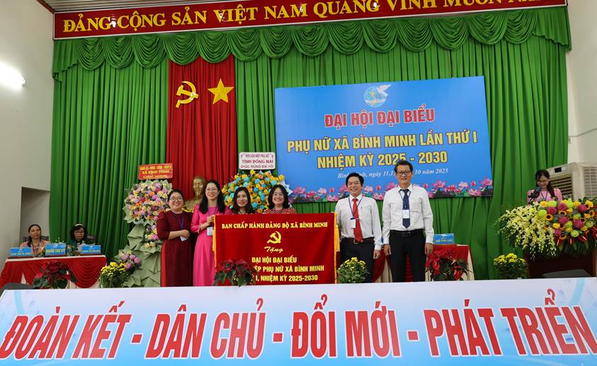 Dịp này Ban chấp hành Đảng bộ xã Bình Minh đã trao tặng Đại hội bức trướng với dòng chữ: “ “Đoàn kết – Dân chủ – Đổi mới – Phát triển”.