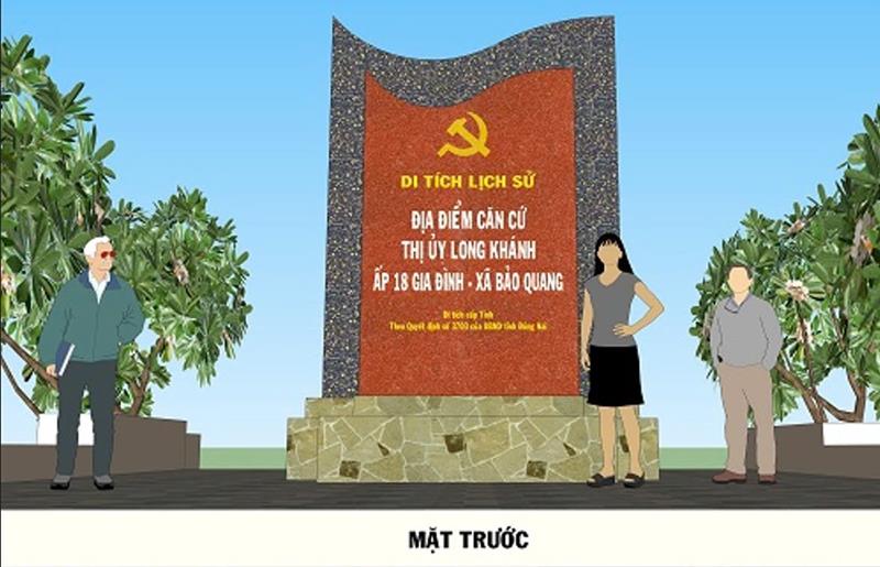 Phối cảnh bảng ghi dấu Di tích địa điểm Căn cứ Thị ủy Long Khánh