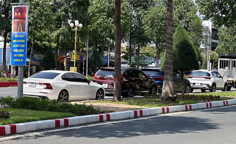 Do thiếu chỗ đậu xe, nhiều xe ô tô đậu ngay lòng đường Nguyễn Ái Quốc (thành phố Biên Hòa).