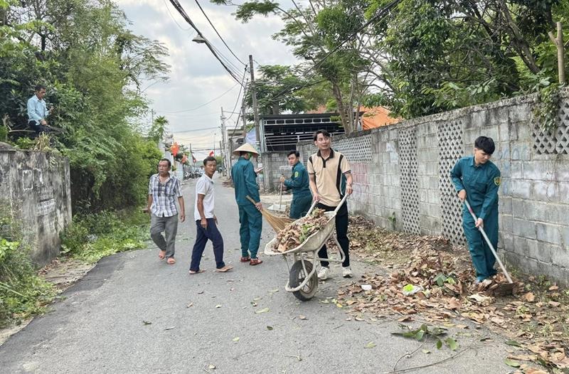 Trường Đại học Cảnh sát Phòng cháy chữa cháy hỗ trợ bà con nhân dân ấp 1, xã An Phước, huyện Long Thành dọn dẹp vệ sinh, bảo vệ môi trường sống tại ấp, khu phố.