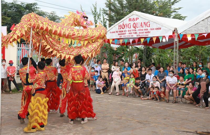 Đồng bào các dân tộc thiểu số ấp Tân Thành, xã Thanh Bình, huyện Trảng Bom xem biểu diễn múa lân
