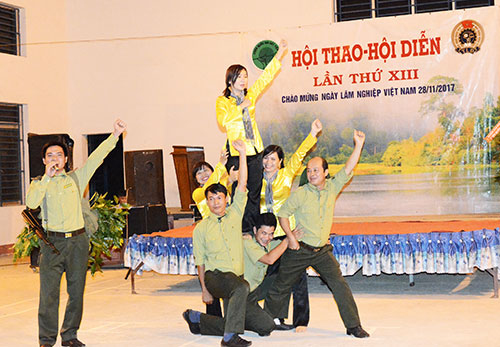 Đoàn viên, người lao động CĐCS Vườn quốc gia Cát Tiên biểu diễn tại Hội thao - hội diễn chào mừng ngày Lâm nghiệp Việt Nam lần thứ XIII.