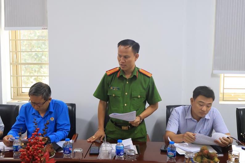 Đại diện Công an huyện báo cáo tình hình lập danh sách người chấp hành xong án phạt tù trong năm 2024 để hỗ trợ vay vốn