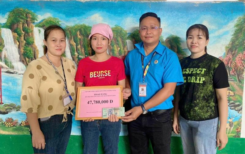 (CTT-Đồng Nai) - Công đoàn quyên góp giúp công nhân bị bệnh hiểm và nghèo và thưởng công nhân có thành tích tích cực trong thi đua sản xuất