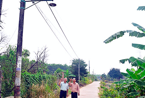 Bà Trần Thị Tám (70 tuổi, tổ 5, ấp 6) chia sẻ, lúc trước, đường bê tông chưa có, điện chiếu sáng chưa kéo về thì đời sống bà con gặp rất nhiều khó khăn, đường trong trình trạng bụi bay mù mịt vào mùa nắng và sình lầy trơn trượt vào mùa mưa khiến bà con đi lại rất vất vả, nhất là các cháu học sinh đi học vào mùa mưa thường hay trượt té, lấm lem áo quần, sách vở. Lúc chưa có điện, người dân “ngại” ra đường vào ban đêm vì đường sá tối tăm, vắng vẻ. Từ khi có đường bê tông, điện chiếu sáng, việc đi lại của người dân được thuận lợi hơn. Bà con thường ra đường đi bộ tập thể dục vào buổi tối và sáng sớm làm cho nơi đây trở nên vui nhộn. “Người dân chúng tôi phấn khởi lắm vì từ ngày có đường bê tông, điện chiếu sáng đã khiến cho bộ mặt của xóm được “thay da, đổi thịt”, đời sống của bà con cũng nâng lên”, bà Tám chia sẻ niềm vui.