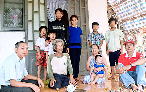 Phó Chủ tịch Hội Chữ thập đỏ huyện Vĩnh Cửu Nguyễn Văn Tâm (bên trái) thăm một hộ nghèo tại xã Mã Đà.