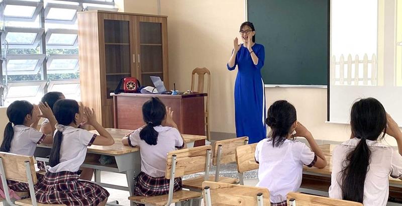 Cô giáo Nguyễn Khanh Nhi trong một tiết dạy học tại trường