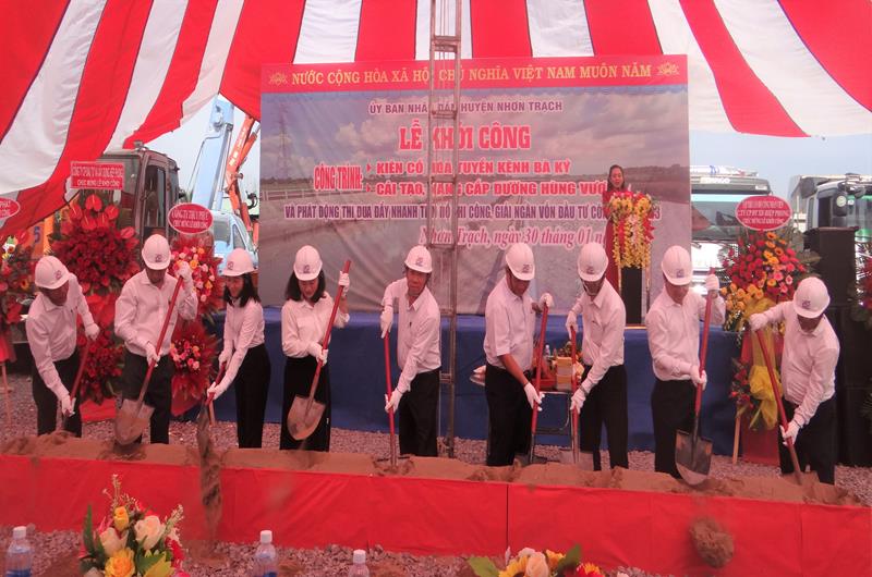 TTĐT - UBND H.Nhơn Trạch đã tổ chức khởi công Dự án kiên cố hoá Kênh Bà Ký; cải tạo, nâng cấp đường Hùng Vương và phát động thi đua, đẩy nhanh tiến độ thi công, tiến độ giải ngân vốn đầu tư công năm 2023.
