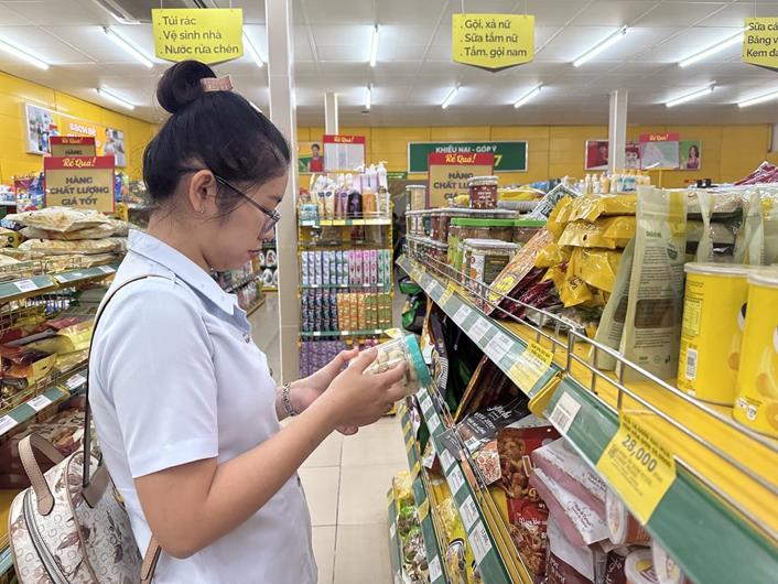 Thành viên đoàn kiểm tra liên ngành của tỉnh kiểm tra công tác an toàn thực phẩm tại cửa hàng Bách hóa xanh Đồng Nai số 39, đóng tại TT.Trảng Bom