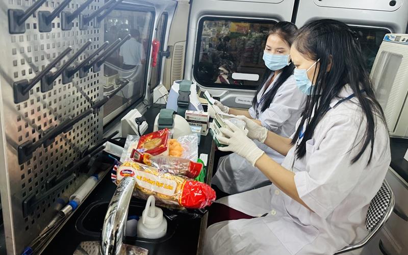 Nhân viên y tế thực hiện test nhanh mẫu thực phẩm