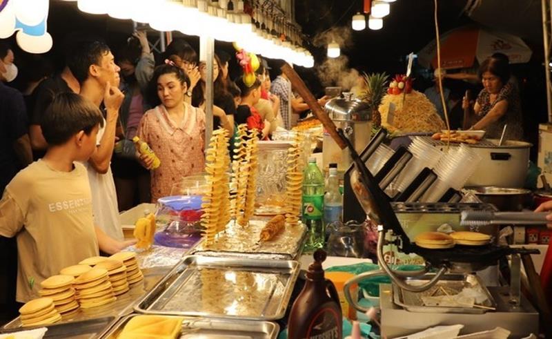Các gian hàng ẩm thực thu hút khá đông người dân và du khách thưởng thức, tham quan
