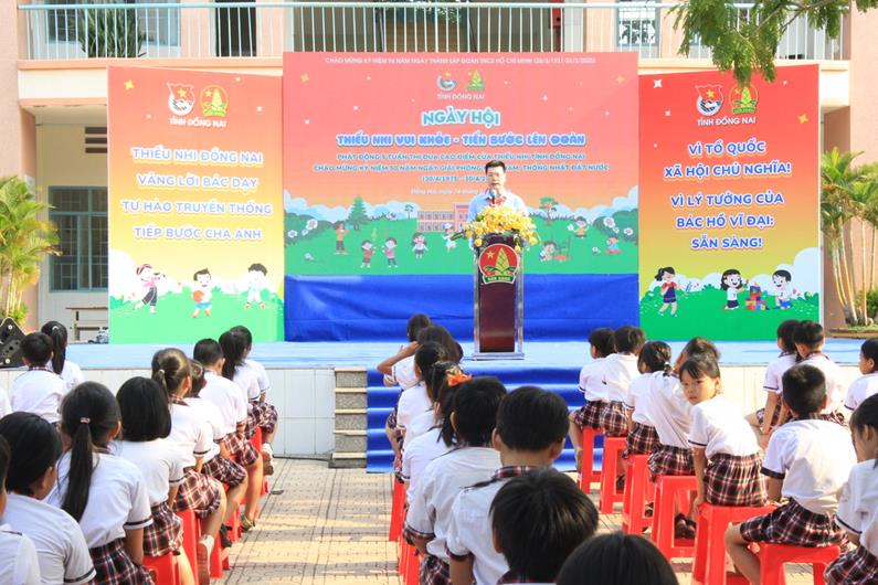 (CTT-Đồng Nai) - Sáng 24-3, tại Trường Tiểu học Trần Bình Trọng, xã Bàu Hàm 2 (huyện Thống Nhất), Tỉnh đoàn, Hội đồng Đội tỉnh đã tổ chức Ngày hội Thiếu nhi vui khỏe - Tiến bước lên Đoàn năm 2025 gắn với phát động 5 tuần thi đua cao điểm chào mừng kỷ niệm 50 năm Ngày giải phóng miền Nam, thống nhất đất nước (30-4-1975 – 30-4-2025).
