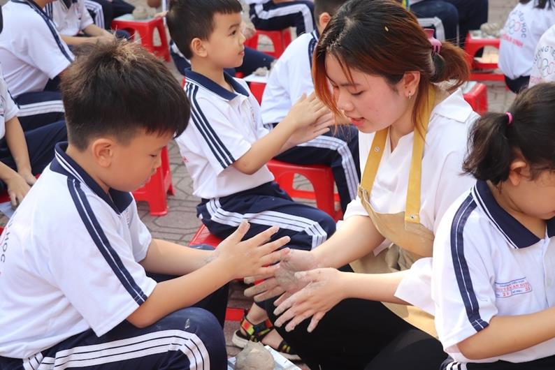 Gần 1 ngàn học sinh toàn trường được trải nghiệm làm gốm.