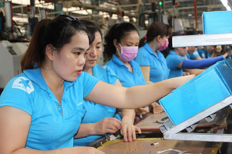 Người lao động một doanh nghiệp trên địa bàn huyện Vĩnh Cửu trong giờ làm việc