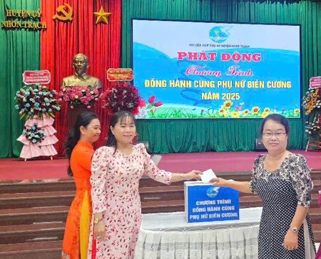 (CTT-Đồng Nai) – Tại Lễ họp mặt kỷ niệm 115 năm Ngày Quốc tế Phụ nữ 8-3 và 1985 năm Khởi nghĩa Hai Bà Trưng, Hội Liên hiệp Phụ nữ (LHPN) huyện Nhơn Trạch đã phát động trong toàn thể cán bộ, hội viên phụ nữ hưởng ứng chương trình “Đồng hành cùng phụ nữ biên cương”, kết quả đã đóng góp được số tiền 15 triệu, giúp đỡ, hỗ trợ cho phụ nữ các dân tộc ở địa bàn khó khăn, vùng biên giới và hải đảo.