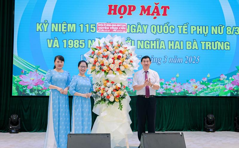 Phát biểu tại lễ kỷ niệm, bà Trần Mỹ Ngọc, Chủ tịch Hội LHPN huyện Vĩnh Cửu đã ôn lại nguồn gốc, ý nghĩa của Ngày Quốc tế phụ nữ 8-3 và khởi nghĩa Hai Bà Trưng. Qua đó để các thế hệ phụ nữ hôm nay nhận thức sâu sắc hơn về vai trò và trách nhiệm của mình trong thời kỳ công nghiệp hóa, hiện đại hóa và hội nhập quốc tế.