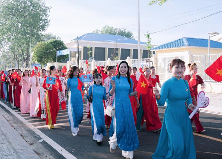 Cán bộ, hội viên, phụ nữ huyện Vĩnh Cửu diễu hành trong trang phục áo dài