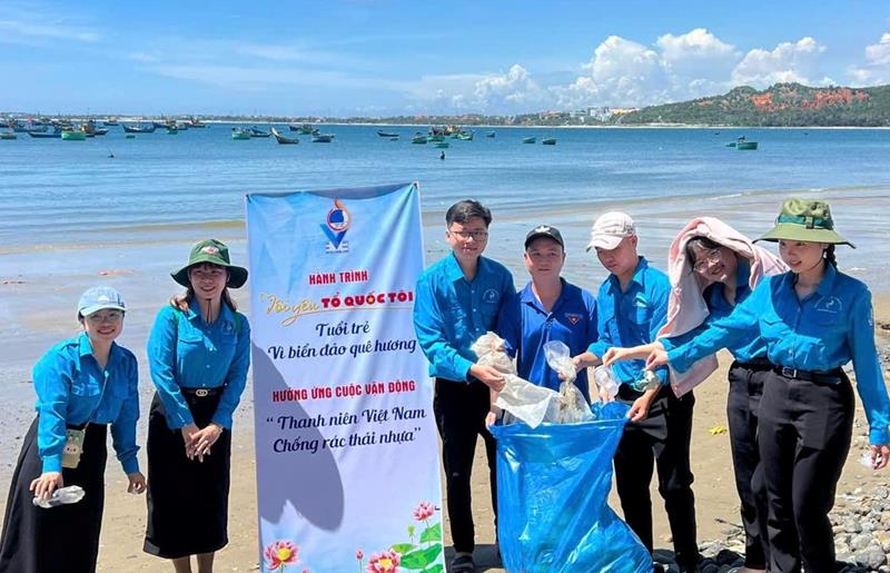Cán bộ, hội viên Hội LHTN huyện Trảng Bom ra quân dọn rác dọc bờ biển hưởng ứng chương trình Tuổi trẻ vì biển đảo quê hương
