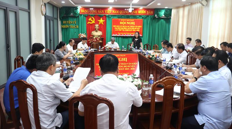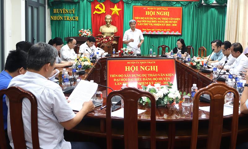 (CTT-Đồng Nai) - Thường trực Huyện ủy đã chủ trì Hội nghị báo cáo tiến độ xây dựng dự thảo văn kiện Đại hội Đại biểu Đảng bộ huyện Nhơn Trạch lần thứ VII, nhiệm kỳ 2025 – 2030. Tham dự Hội nghị có các thành viên trong Tổ biên tập chuyên đề của Tiểu ban Văn kiện Đại hội đại biểu Đảng bộ huyện lần thứ VII