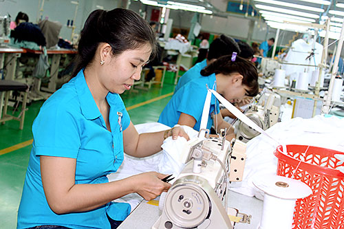 Công nhân huyện Trảng Bom tích cực thi đua lao động sản xuất.