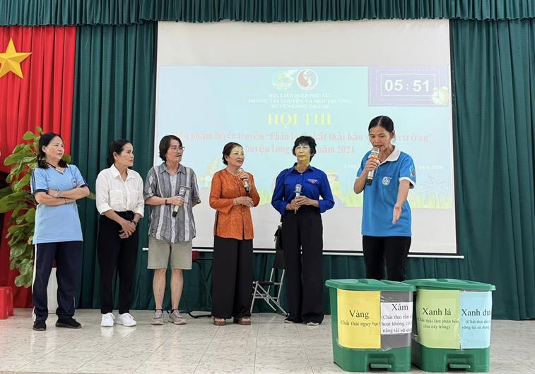 (CTT-Đồng Nai) - Hội Liên hiệp phụ nữ (LHPN) huyện Long Thành vừa phối hợp với phòng Tài nguyên và Môi trường huyện tổ chức Hội thi tiểu phẩm tuyên truyền Phân loại chất thải bảo vệ môi trường năm 2024.