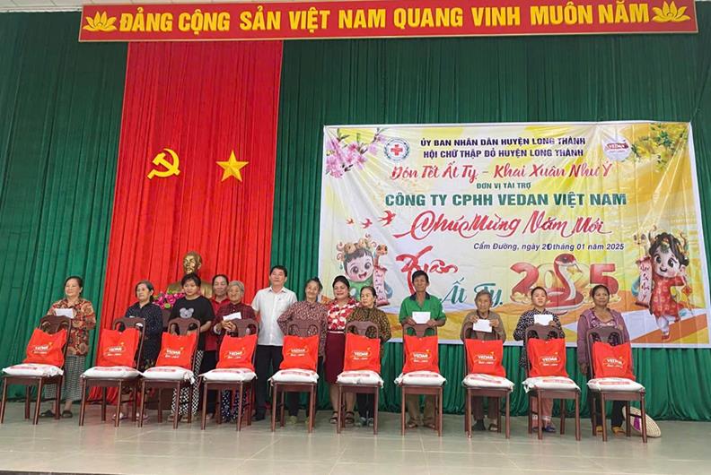 (CTT- Đồng Nai) - Hội Chữ thập đỏ huyện Long Thành vừa phối hợp Chùa Bửu Minh (thị trấn Long Thành) tổ chức tặng 300 phần quà Tết, mỗi phần trị giá 300 ngàn đồng cho các hộ khó khăn, người khuyết tật hành nghề bán vé số dạo Nhân Tết Nguyên đán Ất Tỵ năm 2025.