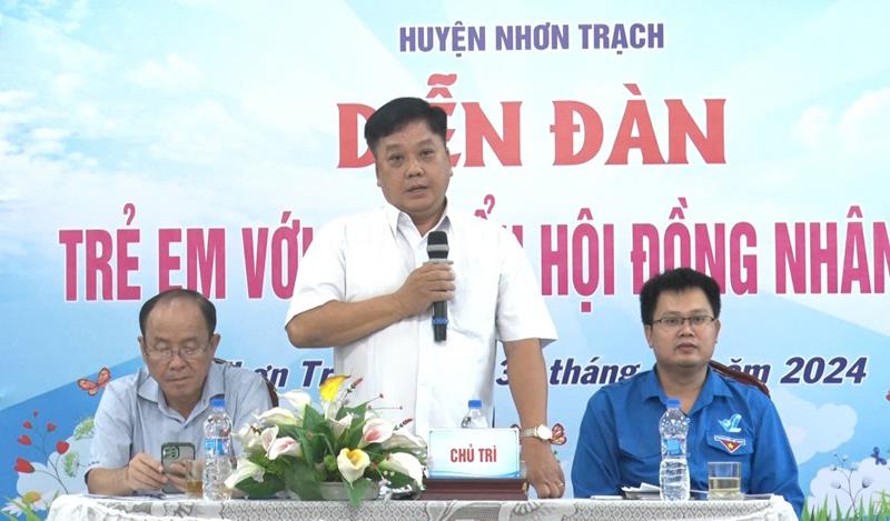 (CTT-Đồng Nai) - Ban Thường vụ Huyện đoàn Nhơn Trạch đã phối hợp cùng Phòng Giáo dục và Đào tạo huyện tổ chức diễn đàn “Trẻ em với đại biểu Hội đồng Nhân dân” năm 2024. Tham dự và chủ trì diễn đàn có Phó Chủ tịch HĐND huyện Đặng Kim Hoàn cùng Phó Chủ tịch UBND huyện Lương Hữu Ích và Bí thư Huyện đoàn Châu Thành Phương.