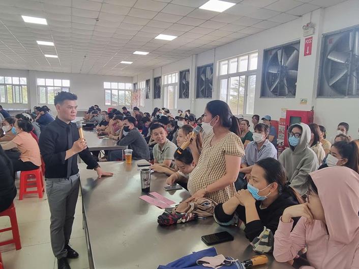 (CTT-Đồng Nai) - Thực hiện Đề án 938 về “Tuyên truyền, giáo dục, vận động, hỗ trợ phụ nữ tham gia giải quyết một số vấn đề xã hội liên quan đến phụ nữ giai đoạn 2017 - 2027”, Hội Liên hiệp Phụ nữ huyện Trảng Bom đã tổ chức buổi nói chuyện chuyên đề về phòng, chống bạo lực gia đình và chăm sóc, bảo vệ trẻ em cho hơn 200 công nhân lao động tại Công ty TNHH PouPhong Khu công nghiệp Bàu Xéo).