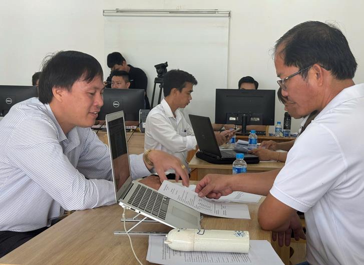 Người dân làm thủ tục mua nhà ở xã hội tại dự án của Công ty TNHH tư vấn thiết kế và xây dựng Thành Thắng