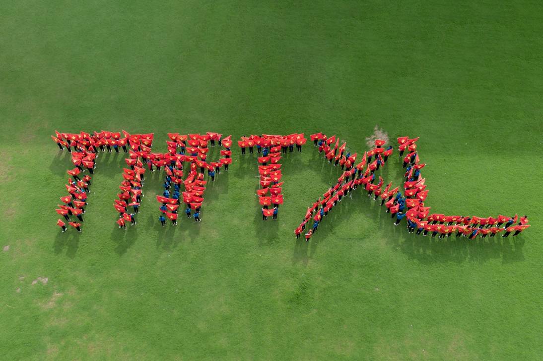 Đoàn viên, thanh niên xếp thành biểu tượng “THPTXL” (THPT Xuân Lộc)
