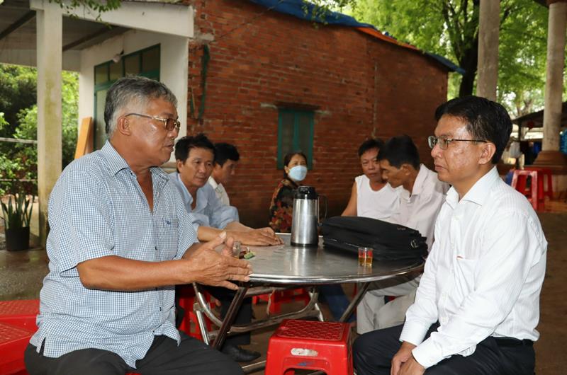 Chủ tịch UBND H.Long Thành Lê Văn Tiếp (phải) trao đổi với người dân bị thu hồi đất làm dự án Cảng hàng không quốc tế Long Thành