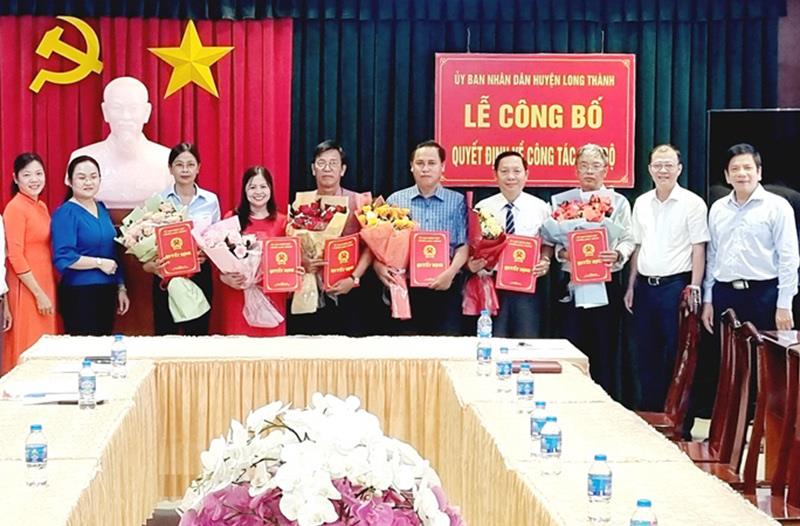 Lãnh đạo huyện Long Thành trao quyết định cho các viên chức quản lý tại các trường học