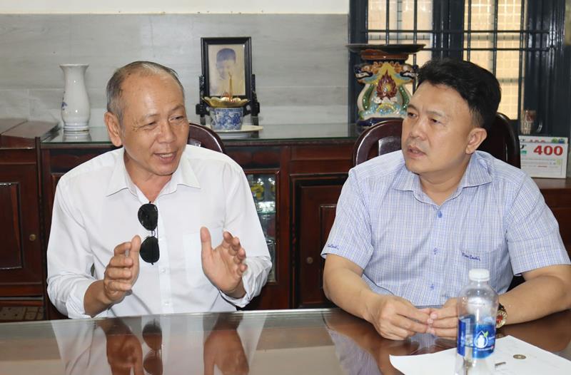 Phó Chủ tịch UBND huyện Long Thành Trần Văn Thân (phải) tuyên truyền, vận động người dân bàn giao mặt bằng
