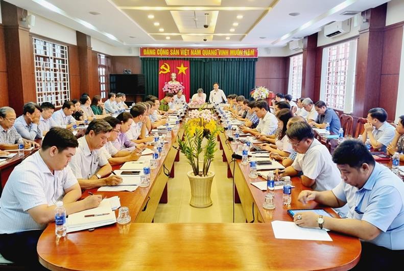 Lãnh đạo huyện Long Thành điều hành cuộc họp.