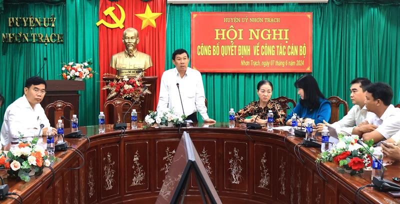 (CTT-Đồng Nai) - Ngày 7 – 6, Huyện Nhơn Trạch đã công bố 7 Quyết định của Ban Thường vụ (BTV) Tỉnh uỷ, BTV Huyện uỷ và UBND huyện về công tác cán bộ năm 2024.