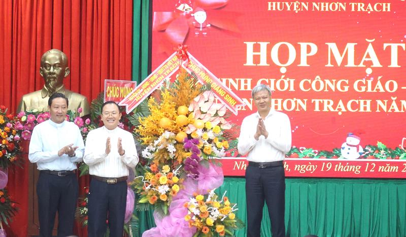 Đại diện giới Công giáo, Tin lành, Linh mục Nguyễn Anh Hùng – Hạt trưởng Hạt Phước Lý, Chánh xứ Giáo xứ Bắc Thần gửi lời cảm ơn đối với sự quan tâm của lãnh đạo huyện Nhơn Trạch, đã tạo điều kiện thuận lợi để đồng bào đạo công giáo tham gia sinh hoạt tại các Giáo hạt Phước Lý và các Giáo xứ trên địa bàn. Đồng thời khẳng định vai trò lãnh đạo của Đảng bộ và Chính quyền huyện Nhơn Trạch trong quá trình xây dựng và phát triển địa phương, đời sống của đồng bào công giáo ngày càng được nâng cao, do đó các tầng lớp bà con giáo dân vô cùng phấn khởi, tích cực sống tốt đời, đẹp đạo, với phương châm “người công giáo tốt cũng là người công dân tốt”, chung sức xây dựng quê hương Nhơn Trạch phát triển lên thành phố trong tương lai.