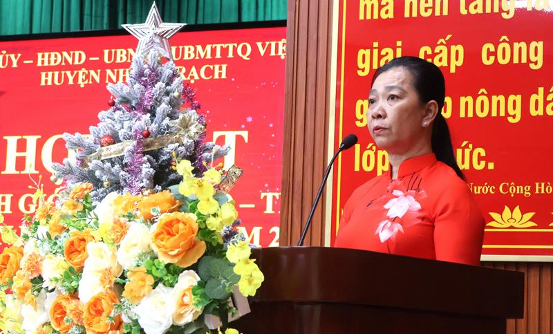 Tại buổi họp mặt, các chức sắc, tu sĩ các giáo xứ, dòng tu đã nghe Chủ tịch Uỷ ban MTTQ Việt Nam huyện Phạm Thị Kiều Thu đọc thư chúc mừng Giáng sinh của Tỉnh uỷ - HĐND – UBND – Uỷ ban MTTQ Việt Nam tỉnh, trong thư các đồng chí lãnh đạo tỉnh đã đánh giá cao sự đóng góp của chức sắc, chức việc, tín đồ Công giáo trong sự nghiệp xây dựng và phát triển của tỉnh nhà, trong đó tình hình phát triển kinh tế - xã hội của tỉnh tiếp tục đạt được nhiều kết quả tích cực, an ninh quốc phòng, trật tự an toàn xã hội tiếp tục được giữ vững. Bên cạnh đó, các đại biểu cũng đã nghe lãnh đạo UBND huyện thông tin một số thành tựu nổi bật của huyện Nhơn Trạch trong năm 2024 như: kết quả thu ngân sách ước đạt 721,8 tỷ đồng, vượt 33,6% so với chỉ tiêu tỉnh giao; giá trị sản xuất công nghiệp - xây dựng ước đạt 253.030 tỷ đồng, đạt 116,28% so với kế hoạch; huyện Nhơn Trạch đã hoàn thành các chỉ tiêu xây dựng nông thôn mới nâng cao, hiện nay đã có 11/11 xã đạt chuẩn nông thôn mới nâng cao, 02 xã Long Thọ và Phú Đông đăng kí xã đạt chuẩn nông thôn mới kiểu mẫu. Đảng bộ, Chính quyền và nhân dân huyện nhà đang tích cực phấn đấu xây dựng huyện Nhơn Trạch đạt tiêu chí đô thị loại III, tiến tới thành lập thành phố Nhơn Trạch và các phường thuộc thành phố Nhơn Trạch đến năm 2025.